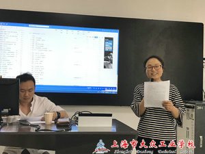 2017年6月2日下午,语文组的彭茂清、张敏老师再次参加了学校组织的文化建设项目诵诗班培训活动,参加此次朗诵培训活动的还包括田凤霞、周晓健、石晓红等八名不同系部的老师。活动依然邀请的是上海大学声音培训师吴笑老师来为大家做指导。此次朗诵培训的篇目是朱自清的散文《背影》,吴老师就其中感情最充沛的一段进行了朗读指导,首先吴老师聆听了老师们的朗读,针对老师们在朗读中出现的问题再进行点评指导,最后吴老师亲自为大家做示范朗读。整个朗读过程中,老师们感情真挚,朗诵入情,较之以前的朗读又有了一定的进步。