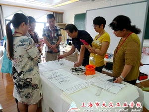 每次上课伊始,贝老师都会一边讲解,一边亲自用原墨作画,在此过程中教会大家一些绘画的技巧,他强调在作画过程中要特别注重用毛笔“擦”的技巧,如何擦出高山、树木、瀑布,如何使整幅画具有平衡感。贝老师也特别强调写意山水画中“留白”的空间意境,因此要求大家在作画过程中也不要过于拘泥技法,要有随性发挥的地方。最后贝老师也告诉大家绘画不是一朝一夕就可以做好的事,真正要画出有意境的山水作品,还是需要时间的积累与长期的练习,他坦言自己也是经过二十多年的苦练,才有了今天这样的境界。每位老师们听后都若有所思,受益匪浅。