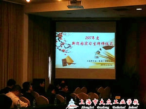 在举行正式的拜师仪式之前,新迎园领导对优秀实习生进行了表彰,其中包括我们大众工业学校的两位学生,一位是14级学长,已是独立上灶的厨师,另一位是13级学长,年纪轻轻,却已成为一名合格的厨师长。冯校长作为嘉宾为他们颁了奖。看着台上的获奖者,也让我们深深体会到“是金子总会放光的”道理。