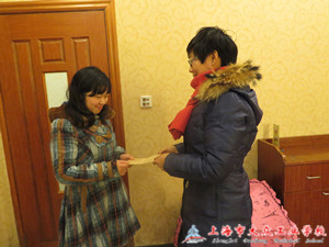 在2015年农历新春佳节到来之际,为了给困难教师送上诚挚的关怀和春节的慰问,29日下午,汽修教学部邱伟明主任和吕冬梅副主任一行二人一起探望、慰问了诸荟倩、唐烨、孙宏进三位教师,给他们带去慰问金,并送上新春的问候和节日的祝福。