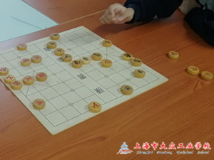 比赛过程中,选手们冷静思考,沉着应战,凝视着眼前的棋盘,似乎每个人都势在必得。小小的棋盘之上,上演着惊心动魄的攻防大战。赛场上鸦雀无声,只听得此起彼伏的落子声,颇有“金戈铁马扫千军,羽扇纶巾棋人生”的气氛。每一名学生都是足智多谋的军师,他们操纵着手中的车大将军横扫疆场。