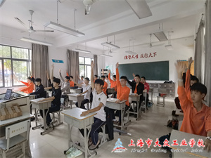 你瞧,在课堂上,每位同学都很认真地跟着老师的口令和指导做动作:背部挺直、双手自然放在桌上、抬头挺胸。“老师,这个很有意思。”……那一串串充满欢乐的话语,那一个个充满节奏的动作,那一张张满溢着笑容的脸庞,让室内体锻课充满别样活力。